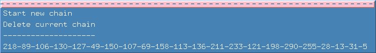 Your task for this example is 'walk' through the chain to see how easy/difficult it was to come up with the correct choices. To do this, you can go to the chains menu and select "Start new Chain". It would also be a good idea to click on the first separator line which turns the menu into a window. Now you can see the chain you are going to re-create.