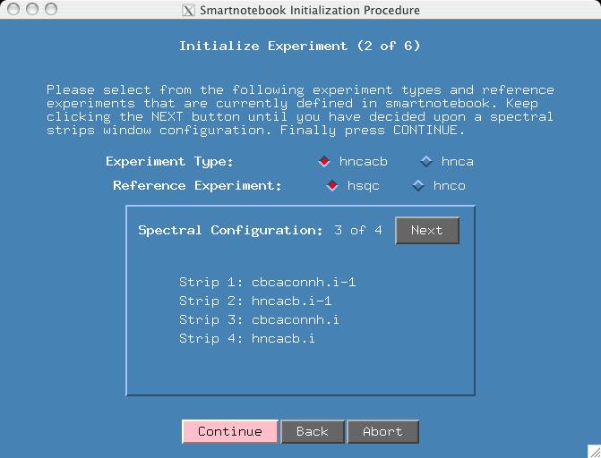 There are 4 spectral views and you can press the "Next" button to see them. Given that we have already seen the first configuration in the first example, please select "Spectral Configuration: 3 of 4". We will still use hsqc as the reference spectra. Press Continue.