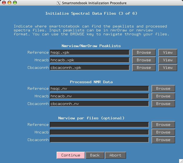 If the user has Nmrview spectra parameter files (corresponding .par files for the .nv files) then these should be entered in the fields provided.