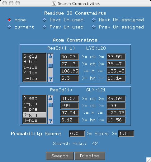 - Scroll the amino acid list of the ResID(i-1) atom constraints window and