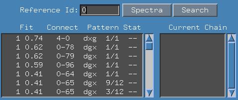 If your data includes an hsqc spectra, then another way to select a reference peak is to click the leftmost mouse button on the desired peak in the spectra (eg, set crosshairs on the interesting peak). Then click on the button "Spectra". The software finds the closest peak to your mouse click and the reference ID number is shown in the entry box. If you do not have an hsqc spectra, then the "spectra" button is disabled. Remember snb and nmrview software work separately, an event in an nmrview window cannot update the snb panel directly, hence the click on the Spectra button.
